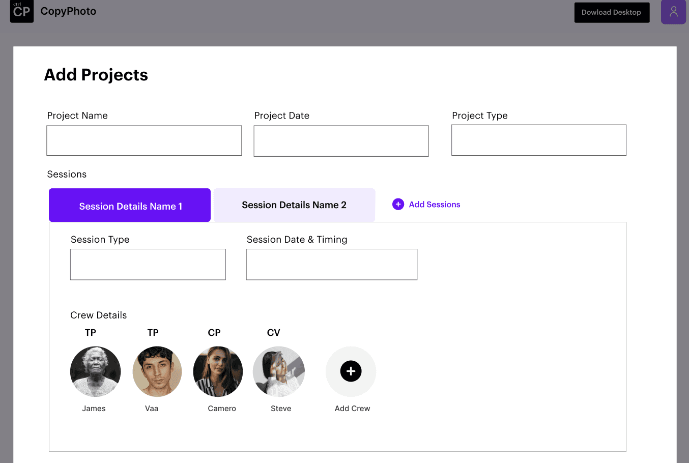 Start by creating a project for each shoot, event, or client. All photos and videos are tracked and organised within the project for complete clarity.